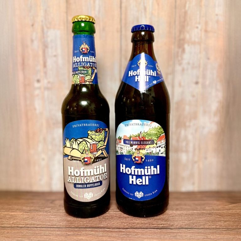Bierstile: Hofmühl Hell (4,9 %) und Hofmühl Alligator Doppelbock (7,5 %)